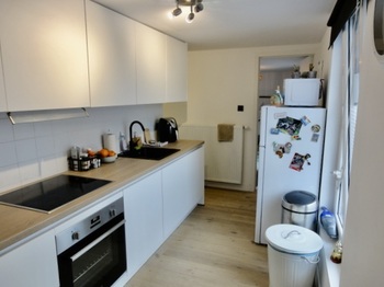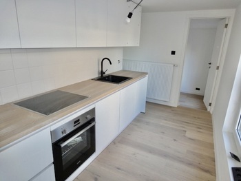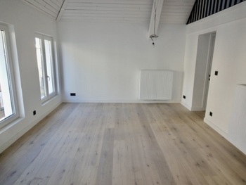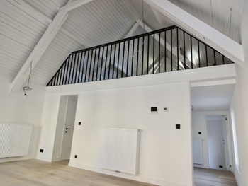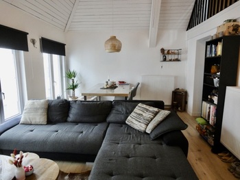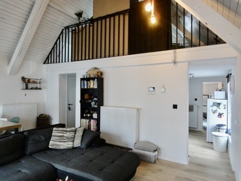 Living/leefruimte op plankenvloer met toffe bovengelegen mezzanine grote ruimte. Keuken voorzien van kookplaat, afzuigkap, oven en vaatwasser. 2 slaapkamer op planken vloer. Badkamer met douche, meubel met lavabo + spiegel met verlichting en toilet + handdoekwarmer.