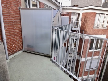 Via de lift van dit verzorgd gebouw bereik je het appartement op de bovenste verdieping (twee appartementen per verdiep). De inkomhal (10m²) op frutvloer geeft toegang tot alle kamers van het appartement en is voorzien van handige 4 deurs vestiairekasten met bovenaan bergruimte. De living (30m²) op vinylvloer met sierschouw heeft grote ramen met veel lichtinval.