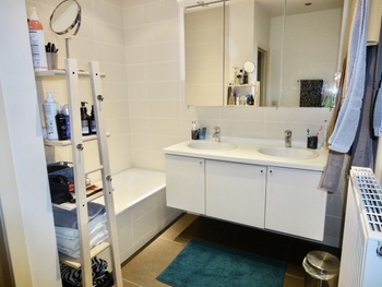 Inkomhal met apart toilet met handenwasser. Living op moderne groot module tegelvloer met open keuken voorzien van gaskookplaat, afzuigkap, combi micro, hete luchtoven, koelkast met vriesvak, geïntegreerde vaatwasser. Berging bij keuken voor was en droogmachine. 3 slaapkamers op vinylvloer. Badkamer met ligbad, badkamermeubel met dubbele lavabo en aparte douche. Ruim terras voor - en achteraan. Garagestaanplaats. Lift aanwezig. 60€ gemeenschappelijke kosten gebouw, lift, gemeenschappelijke elektriciteit, onderhoud. EPC: 72 kWh/m2 Label A