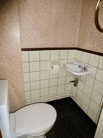 die men zou kunnen verwijderen en wasmachineaansluiting creëren. Apart toilet met handenwasser. Kelderberging aanwezig en inclusief de verkoopprijs.