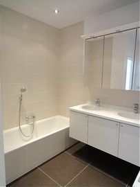 Inkomhal met apart toilet met handenwasser. Living op moderne groot module tegelvloer met open keuken voorzien van gaskookplaat, afzuigkap, combi micro, hete luchtoven, koelkast met vriesvak, geïntegreerde vaatwasser. Berging bij keuken voor was en droogmachine. 3 slaapkamers op vinylvloer. Badkamer met ligbad, badkamermeubel met dubbele lavabo en aparte douche. Ruim terras voor - en achteraan. Garagestaanplaats. Lift aanwezig. 60€ gemeenschappelijke kosten gebouw, lift, gemeenschappelijke elektriciteit, onderhoud. EPC: 72 kWh/m2 Label A